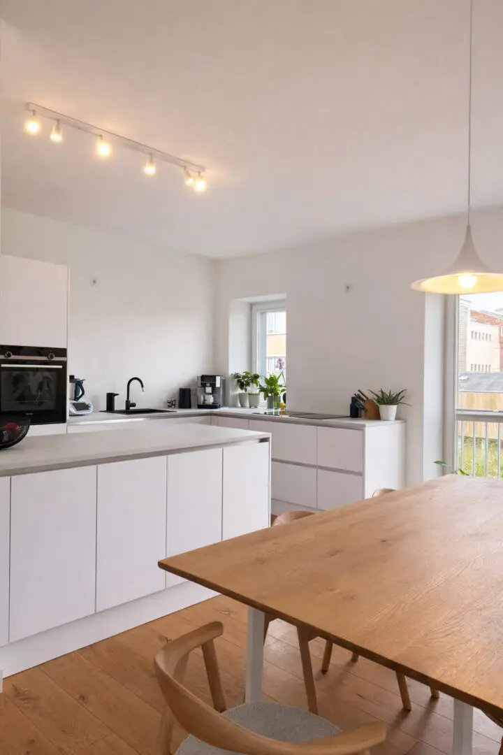 Die offene Küche fügt sich harmonisch in den großzügigen Wohn- und Essbereich ein, der durch den angrenzenden Balkon zusätzlich an Wohnqualität gewinnt.